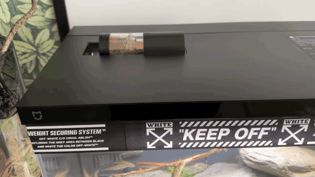 鱼缸黑色上盖的凸起处就是自动喂食器了,旋转喂食,开盖位置旋转到下方因为重力打开,之后鱼食掉落,原理挺简单,按键操控或者米家APP操控都可以。