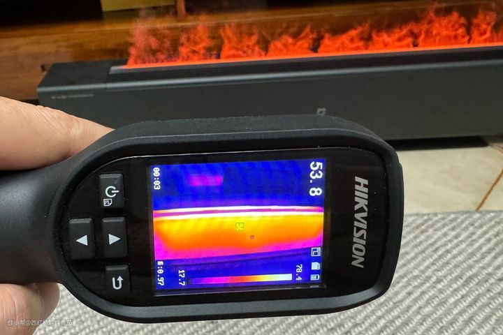 同样踢脚线款,中高端的火焰款侧面隔热就好很多,工作时只有不到55℃