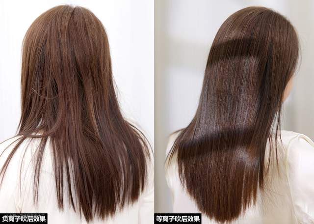 但等离子吹风机吹干后的效果明显更胜一筹,不仅可以收紧毛鳞片,还能形成一层负离子水膜,让头发整体看着更顺滑。
