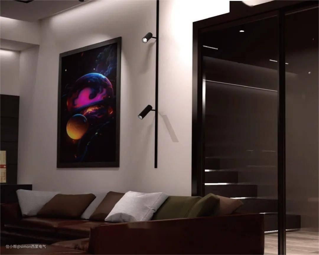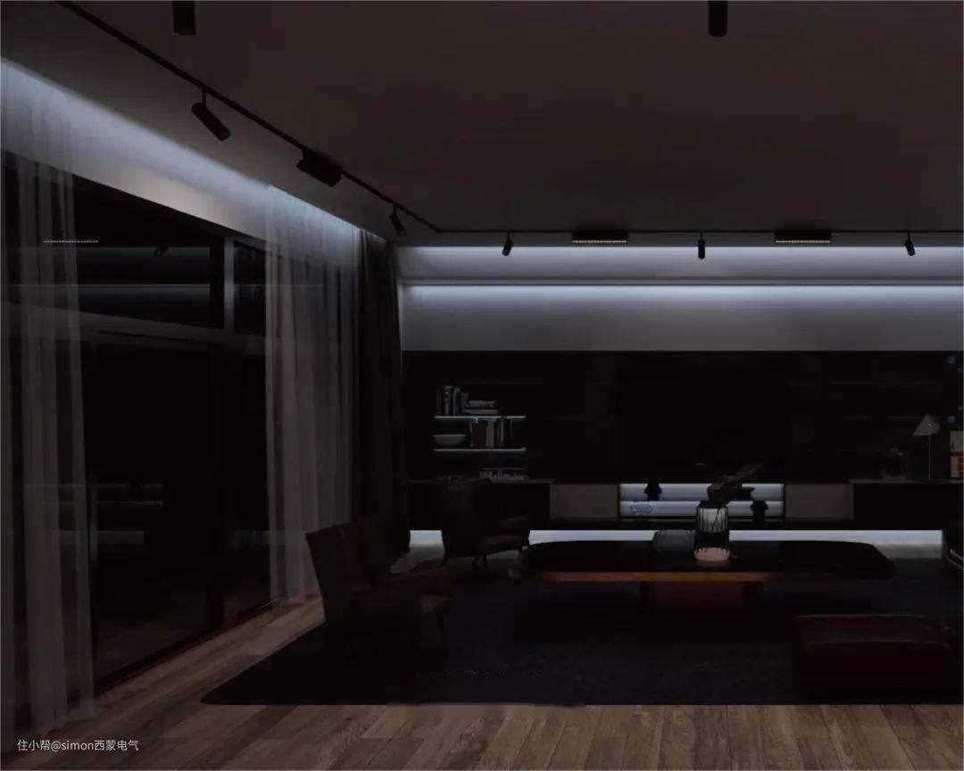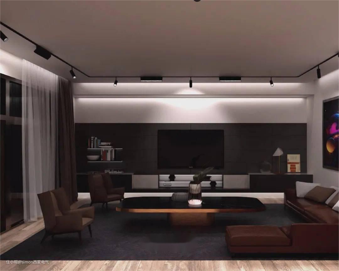另外,在电视墙、沙发背景墙等区域适当运用射灯,也能塑造出整个空间层次感,带来很强的沉浸式体验。