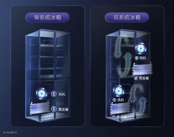 - 独立双系统,冷藏冷冻各搭载一组蒸发器,独立制冷,不串味;
