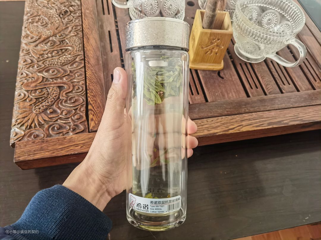 据我所知,希诺是双层玻璃口杯起草单位。做实业的朋友都知道,如果一家企业可以制定行业标准,就意味着技术和实力。这种双层隔热玻璃杯,又叫老板、领导杯,有这样的俗称,主要还是因为,这样的杯子看起来,相比不锈钢或其他材质的杯子要美观高档很多,喝水的时候触感又很舒服。这款杯子,杯体还加入银离子,滤网和盖子又是纯钛材质,整体都有很好的杀菌作用,日常使用对健康也有好处。用了这么长时间,我感觉预算如果足够的话,自己使用也很不错。饮水泡茶整体体验比其他材质的感觉好多了。平时送礼很头疼,不知道该送什么?其实送礼送健康,是永远的真理,礼尚往来,这款杯子作为礼品赠送也是不错的选择!