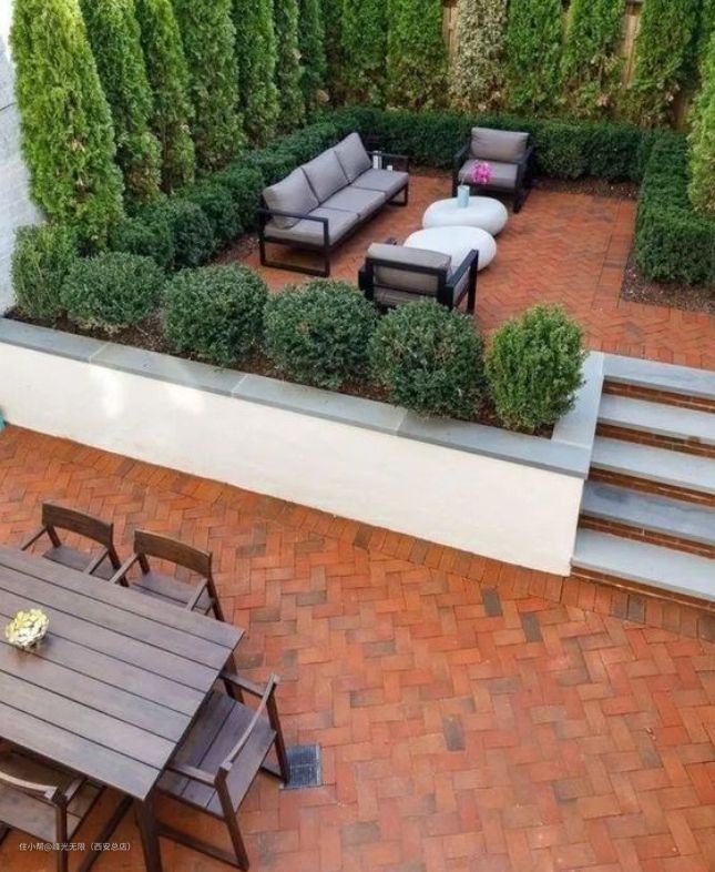 注意:围墙不要太高,否则影响视野,会比较压抑,建议在1.6m-1.8m之间。当然,很多小区为了保证统一的风格效果,不允许改围栏,那我们也可以考虑贴围墙种一些植物,比如竹子、蔷薇、爬墙植物等等,提高院内隐私。