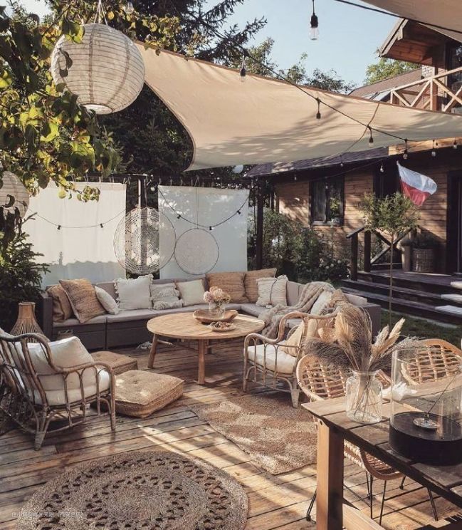 如果院子里的空间足够大,可以选择放户外沙发,舒适度更高。考虑耐腐耐磨性,可以选择钢制沙发+舒适靠垫、藤制、铝制等材料。