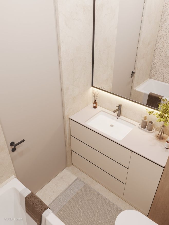 大地色家具与软装:选择大地色调的浴室家具和软装饰品,如浅色木制橱柜、深棕色的浴室镜框、浅灰色的浴垫和毛巾等。这些颜色既能与整体装饰风格相呼应,又能为浴室增添一份温馨与亲切之感。