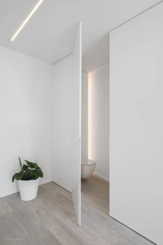 无论是卫生间门还是卧室门,都可以尝试做隐形式的,而且门最好做成可以自动关闭的,将门“藏”进墙里或者柜子里,不开门的时候完全可以忽略。