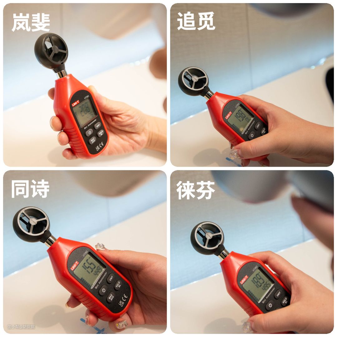 综合结果是: 岚斐 > 追觅 > 徕芬 > 同诗。 风速测试结果,一档二档风力岚斐最大, 追觅第二,徕芬第三,同诗是最低。