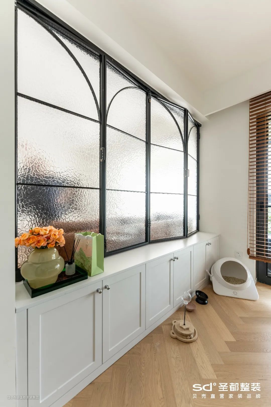 柜体选择拱形的样式,让收纳柜集储物与装饰为一体,实现收纳的艺术美。