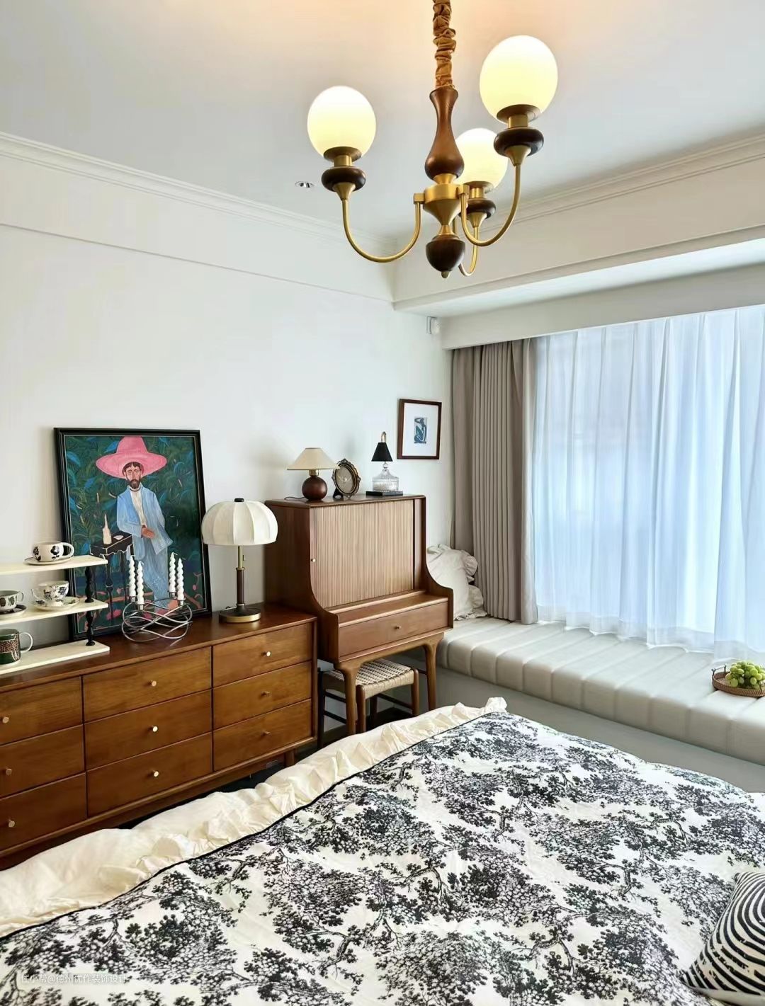 5.细节装饰:中古风注重细节和装饰,选择一些具有复古韵味的摆件和装饰品来点缀空间。选择具有雕刻和装饰性细节的家具、门窗框、楼梯扶手,考虑使用铁艺吊灯、吊扇、古董钟表、雕刻工艺品、瓷器或手工编织的地毯,古董灯具或打造一个独特的照明方案,都能为房间增添独特的个性和历史氛围。