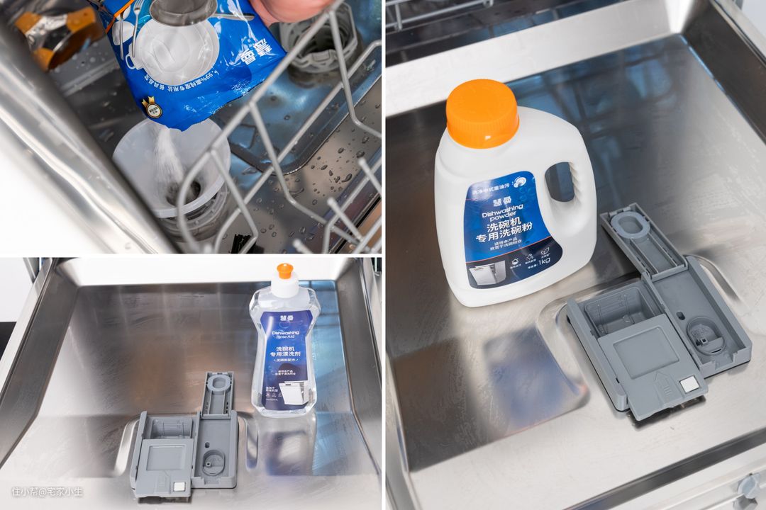 首次使用洗碗机需要加入软水盐和亮碟剂,这两样耗材无需每次添加,洗碗粉或洗碗凝珠则基本需要每次添加一次(宝宝除菌洗、果蔬洗无需添加)。