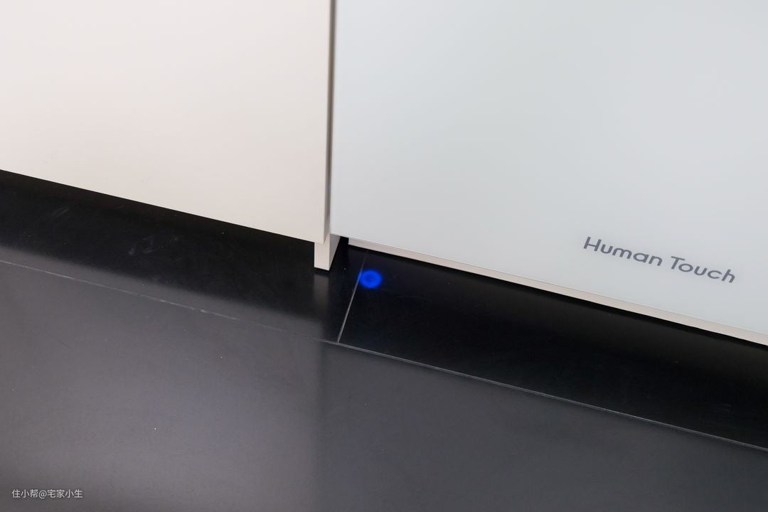 全嵌入洗碗机安装之后,正面是没办法看到控制面板的显示屏幕的,所以慧曼I3在工作时会在地面投射一个蓝色地投灯,运行状态一目了然。