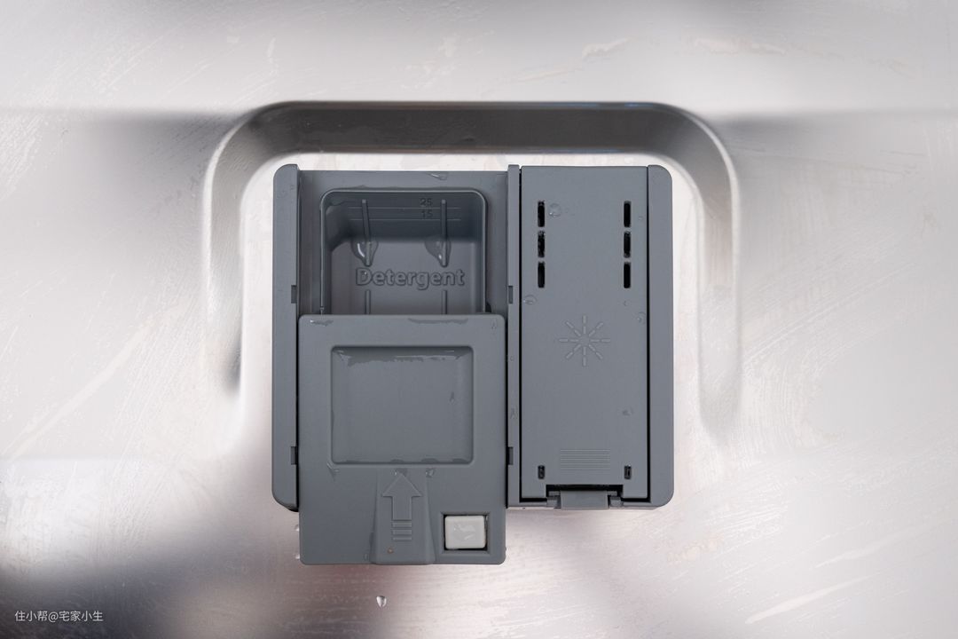值得一提的是慧曼独特的宝宝除菌系统,先是加热到75℃高温保持煮洗20分钟之久,一边煮洗一边除菌,有意思的是为了保证宝宝餐具的安全,分配器保证其中的洗碗粉、亮碟剂绝对不会出现外漏的情况,这也是专门针对宝宝餐具所特别设计的一个功能。