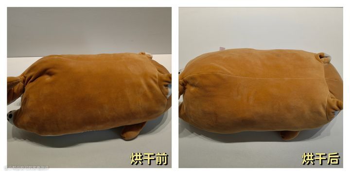 我找了小毯子和毛绒玩具进行烘干,并在烘干前后进行了称重: