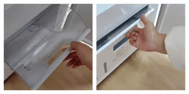 里面还配备了专门的集水箱 拉开也很顺畅: