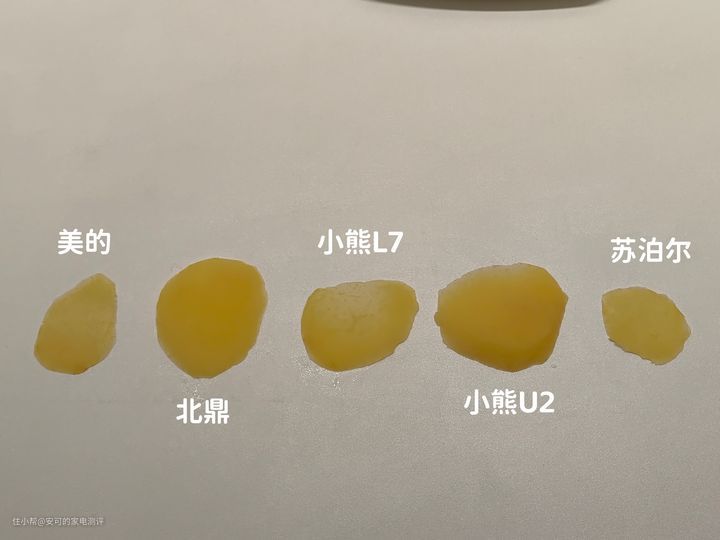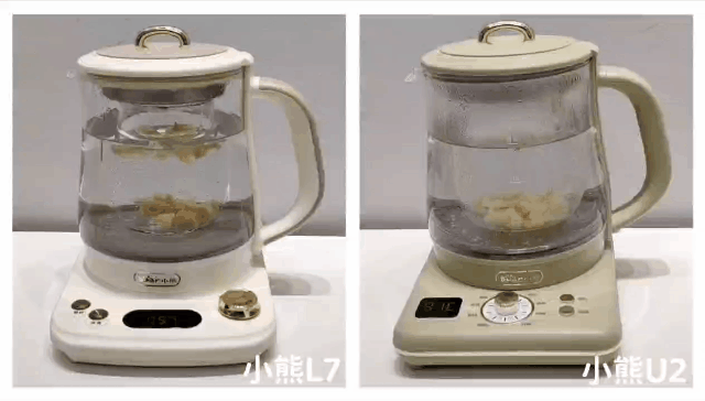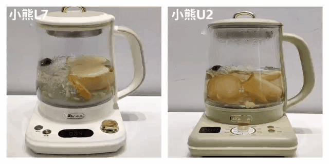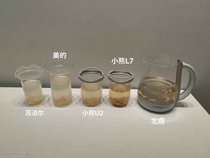 北鼎和小熊的两款明显颜色更深,特别是小熊L7,炖煮的效果比较好,证明经过长时间的炖煮,营养能够更好的析出。