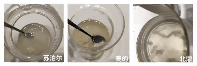 在相同的炖煮时间下,苏泊尔的炖煮效果有些差强人意,鱼胶有的地方居然还有点硬,而效果稍好一些的,是北鼎IK121可能因为没有隔水炖锅的原因,炖的口感较为软烂。 从动图也可以看出这几款炖煮的情况。