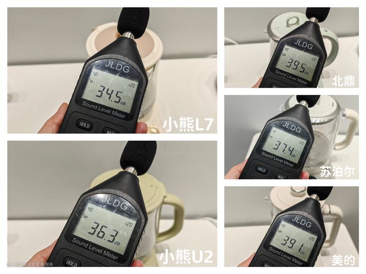 小熊L7的噪音是最小的,只有34db,跟其他几款的差异比较大。如果你是办公室煮水啥的,我真的强烈推荐小熊L7,在办公室煮东西的时候极大避免了尴尬