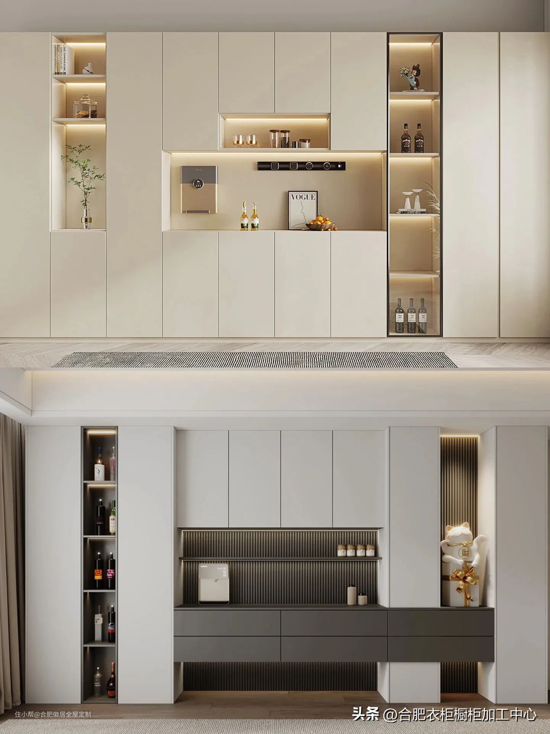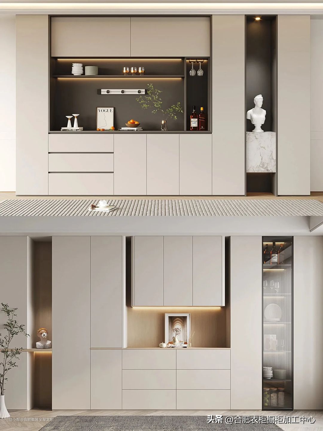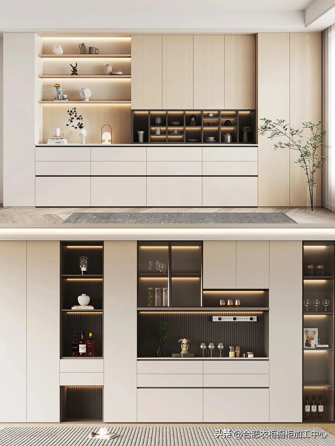 餐边柜可以是上浅下深的,和橱柜一样,内退也是一种经典设计,突出层次感