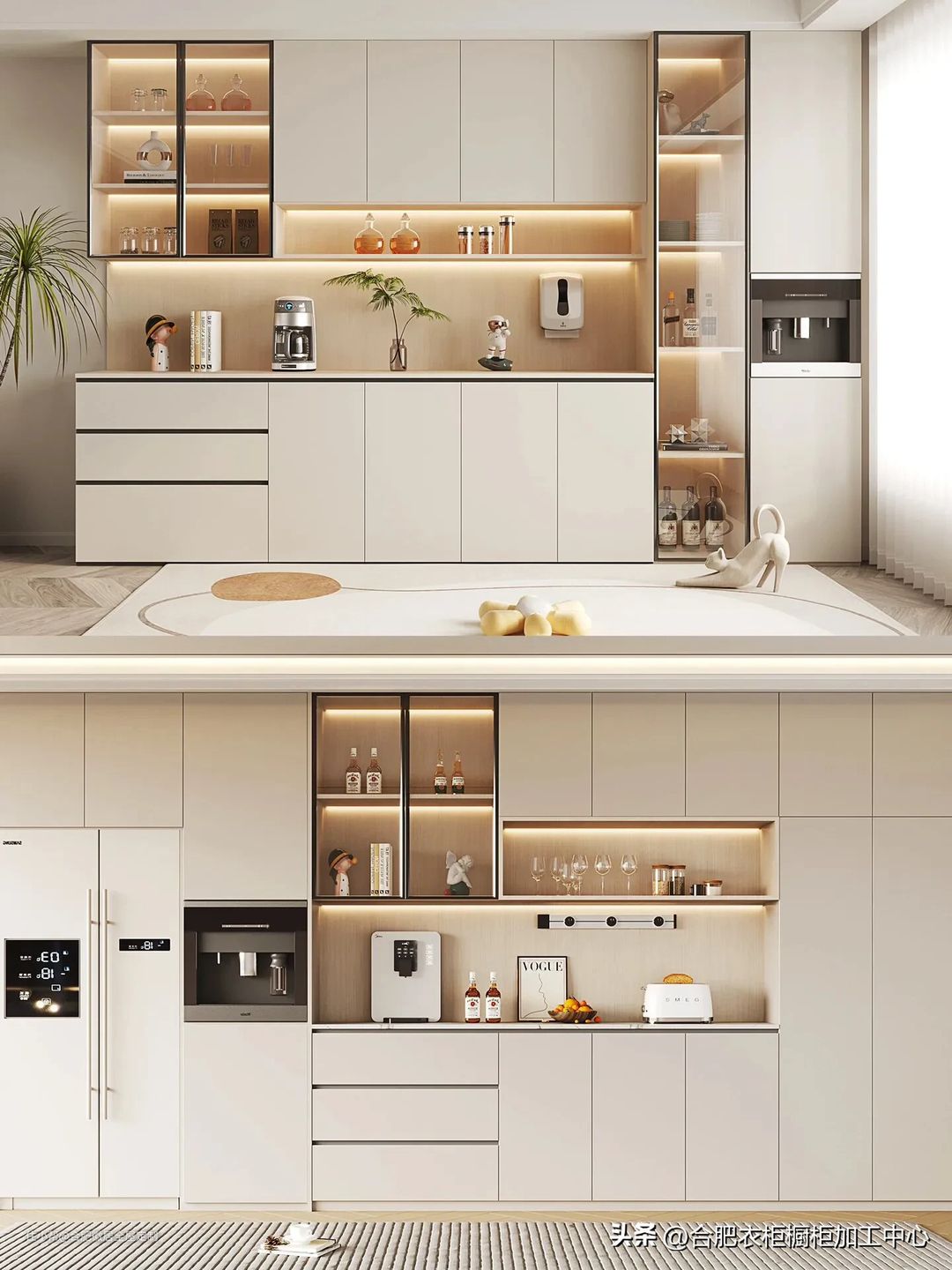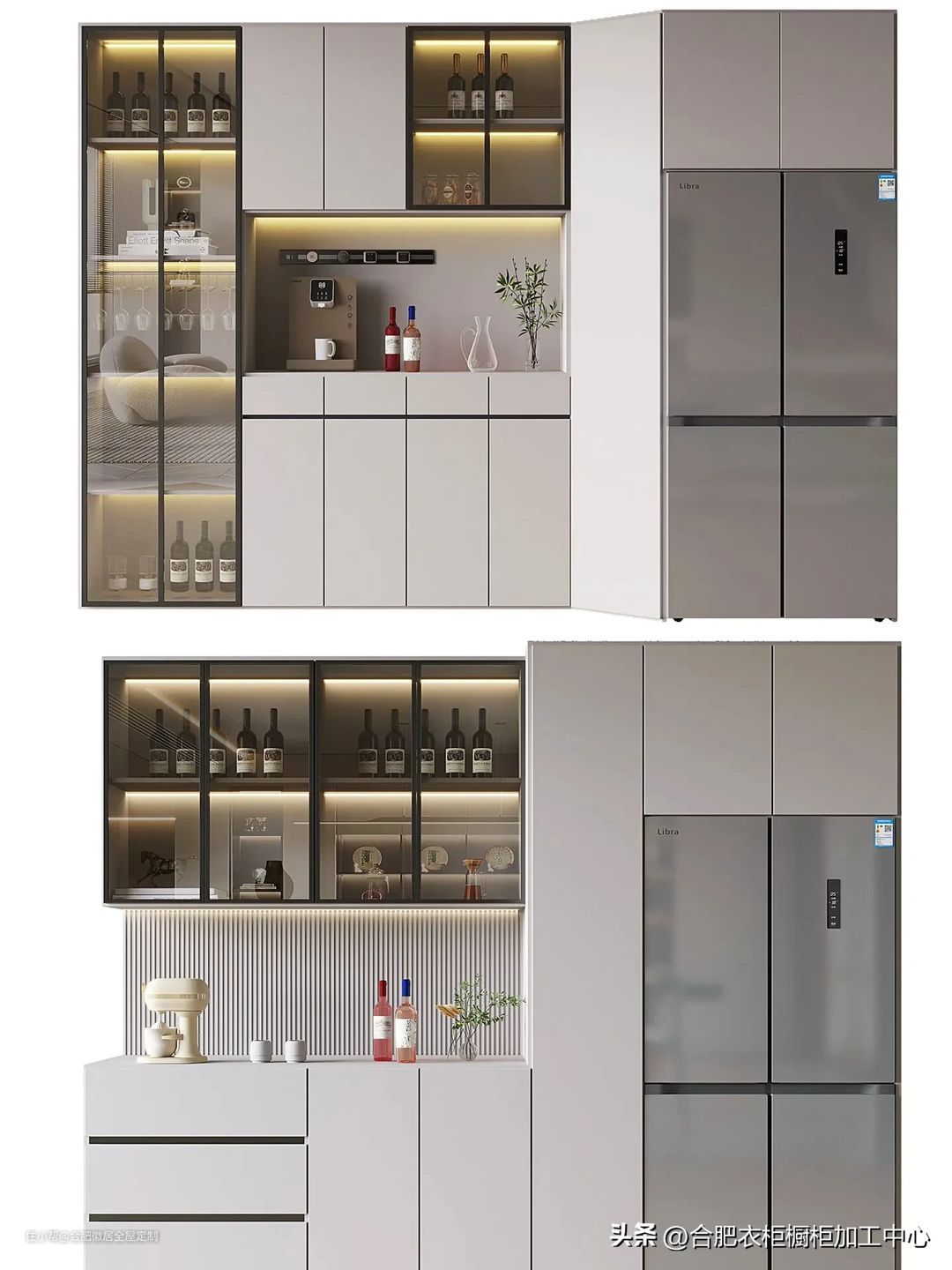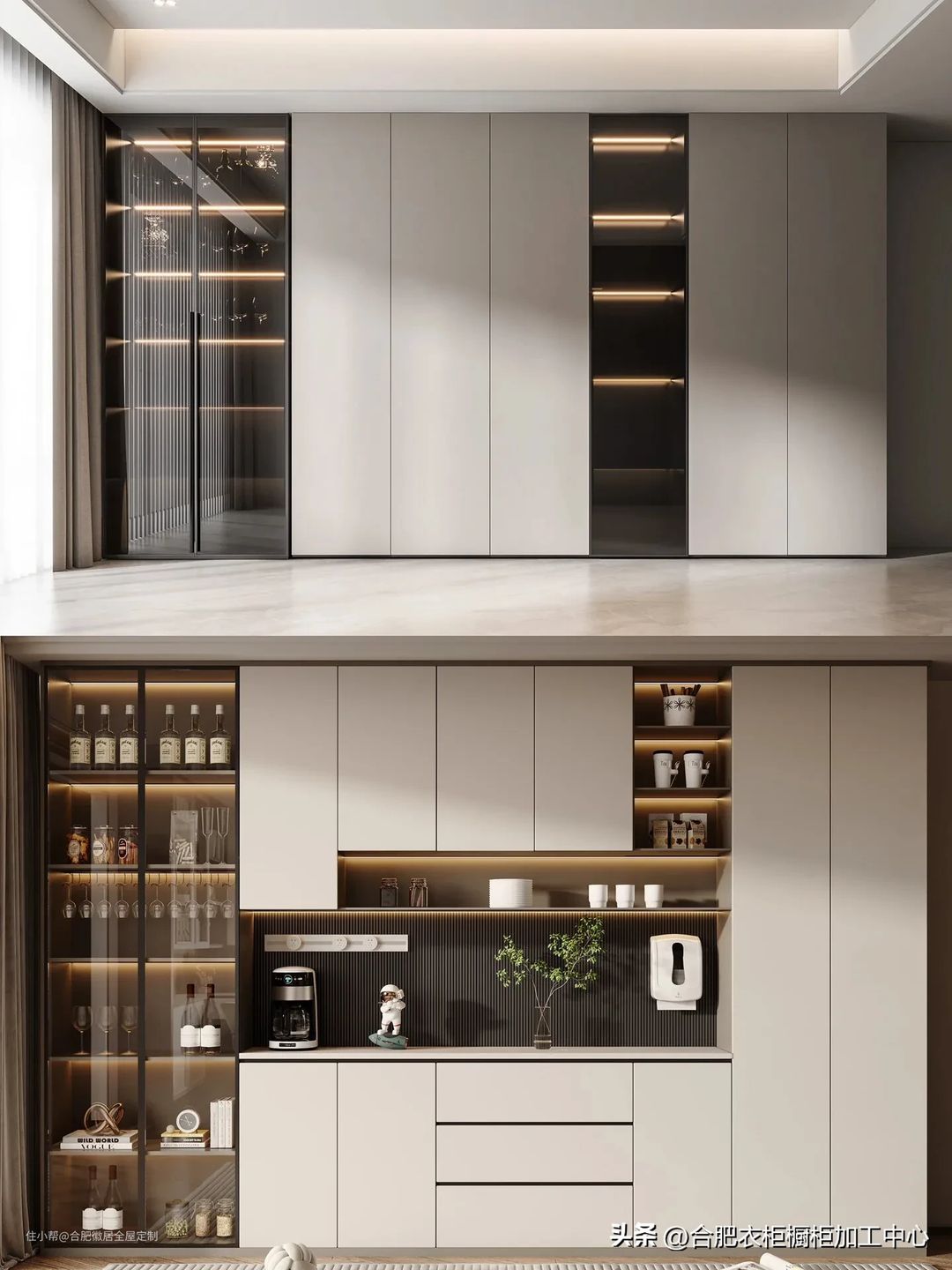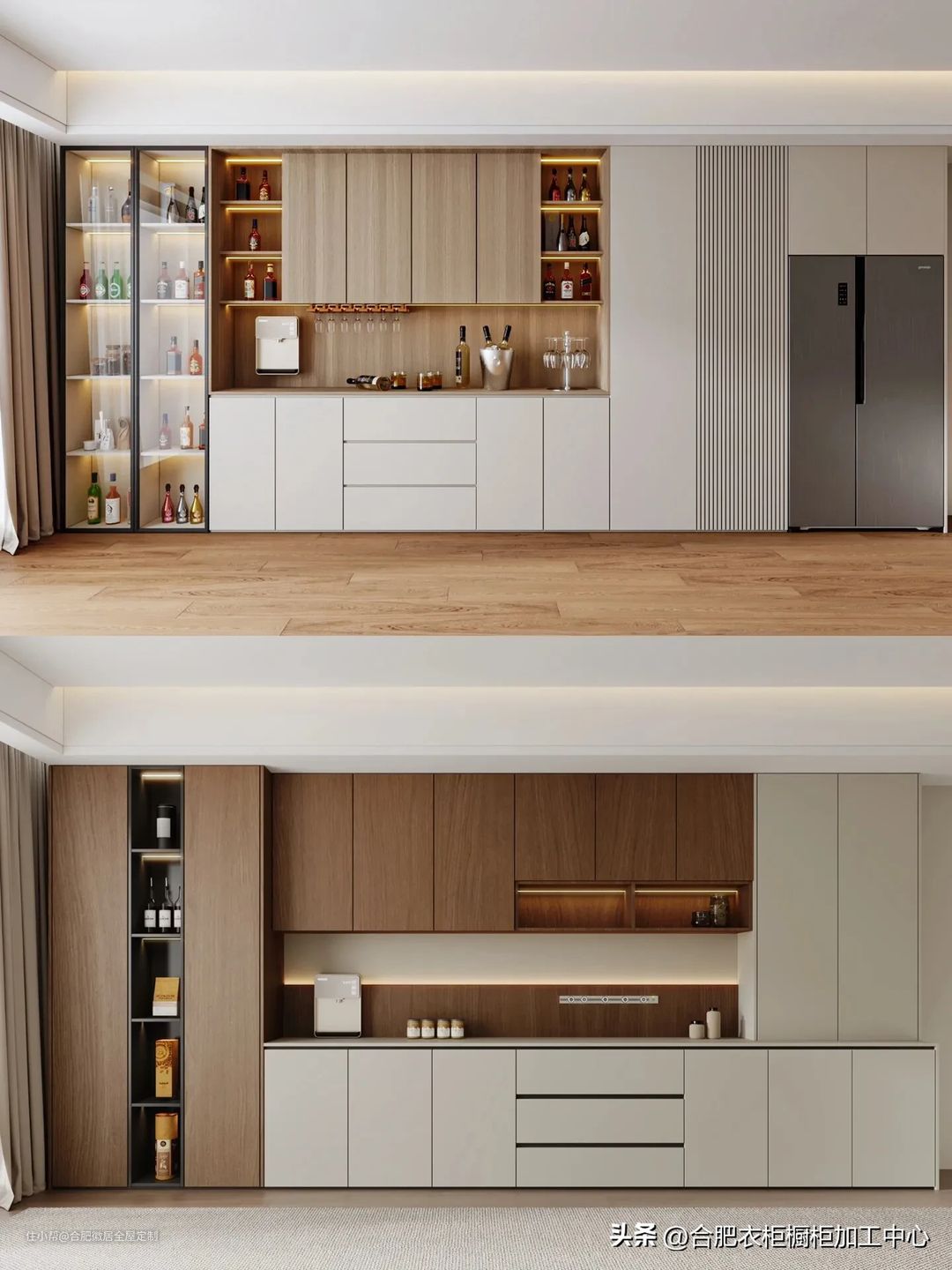 餐边柜可以是上浅下深的,和橱柜一样,内退也是一种经典设计,突出层次感