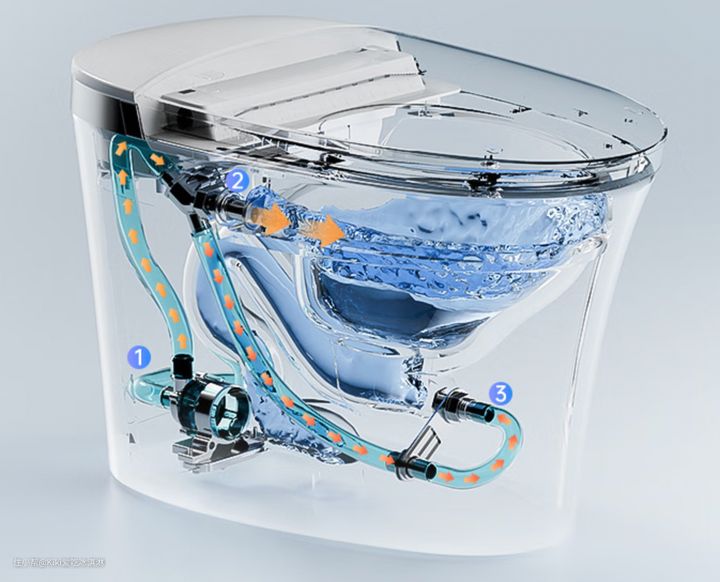 智能马桶的冲水方式同样有两种,一是直冲式,二是虹吸式。