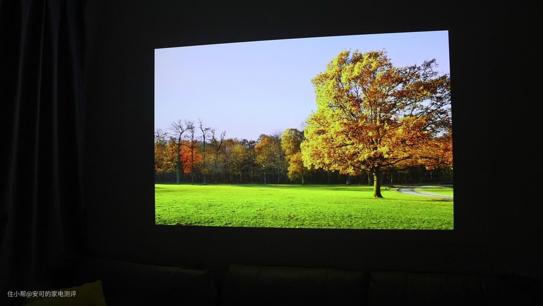 极米H6 4K版亮度1200 CCB流明,受光线的影响小,白天黑夜都能投出高清画面。 晚上关灯的效果如下: