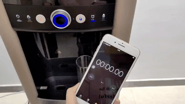 仅用了10.65秒即可接满一杯250ml的水,这个速度可以说是非常快了! 我们设置150ml的出水量,再来测试接一杯150ml的水所需的时间。