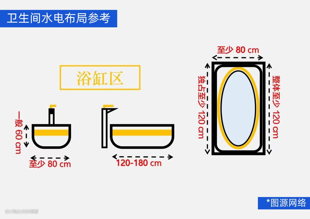①通常浴缸的电在下水在上,需提前确定好浴缸的款式,量身定制水电位;