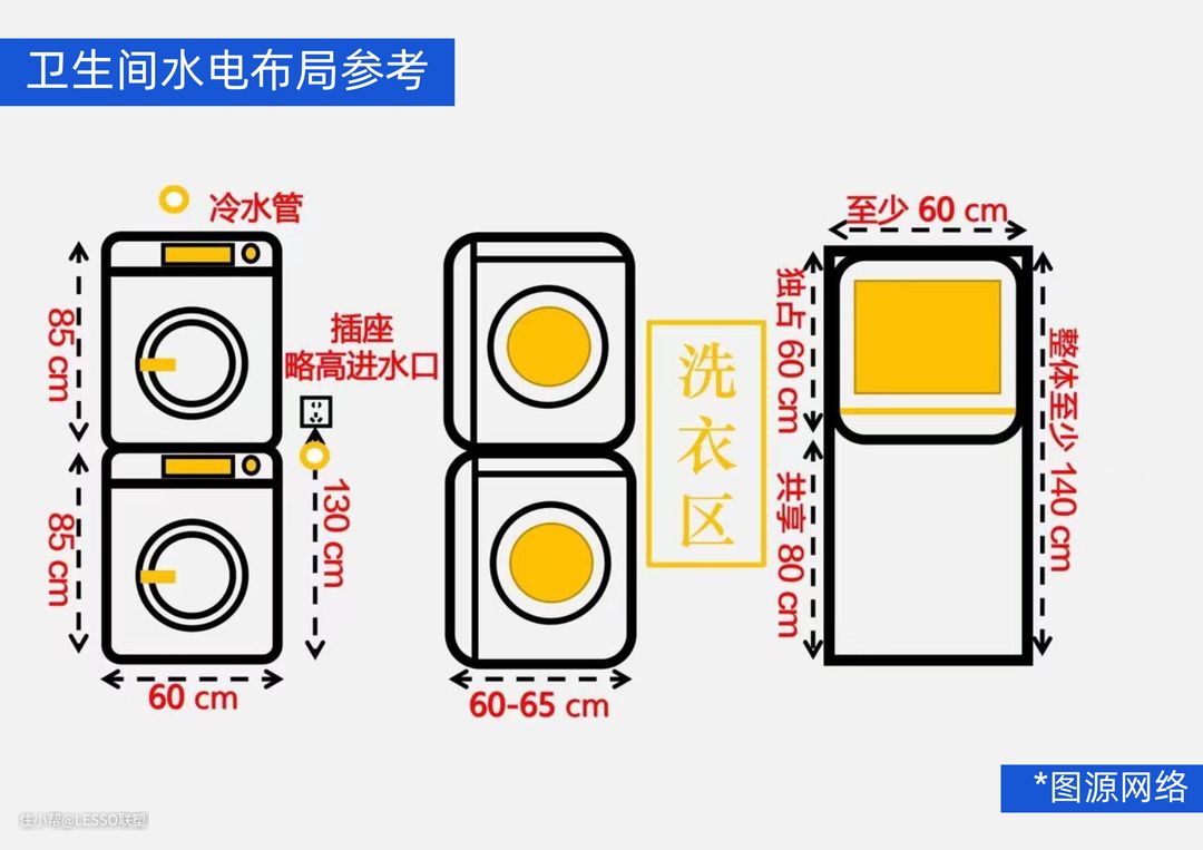 ①滚筒洗预留在后面和侧面都可以、波轮洗衣机水电预留在洗衣机上方;