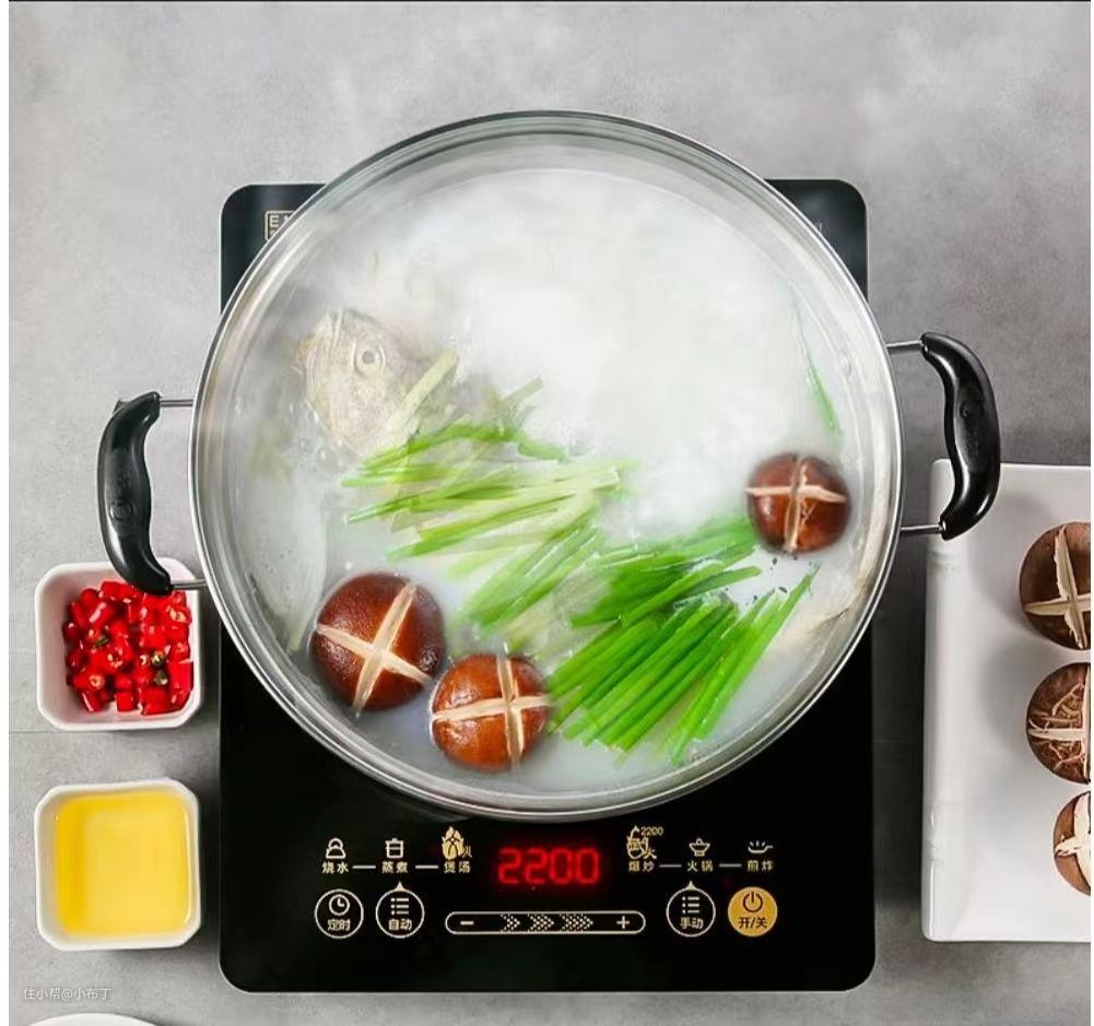 2200W大火力,满足日常爆炒。200mm大线圈立体加热,加热更加均匀。内外单独加热,功率在1000W。