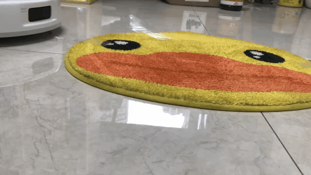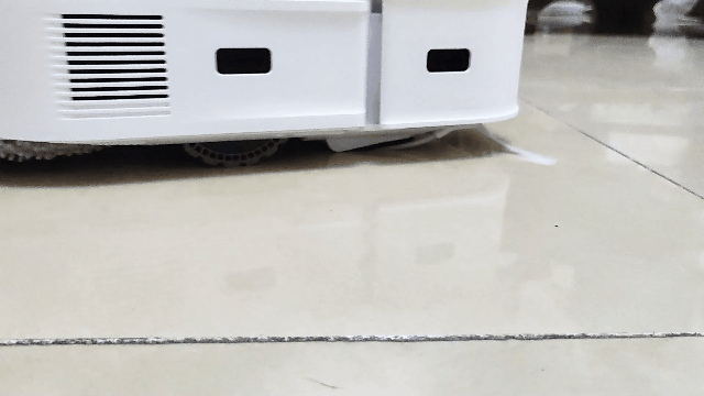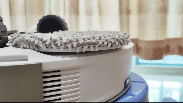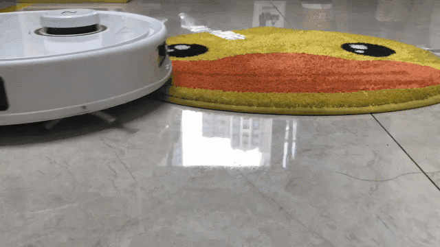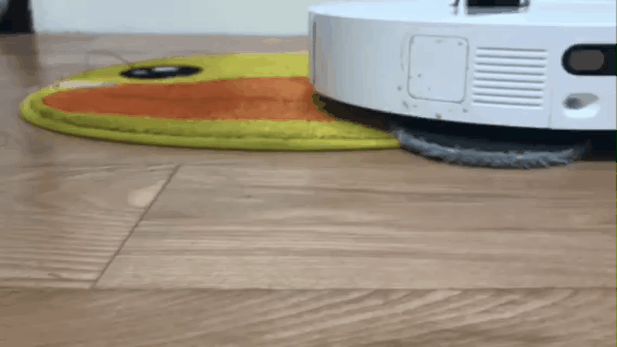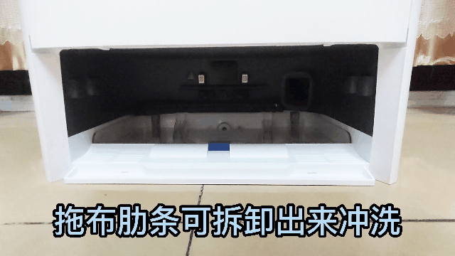 拖布自动抬升,这里可以清晰看到,不仅在地毯区域会自动抬升。拖地完毕之后,也会自动抬升,避免湿润的拖布把已经清洁的地面二次弄湿、弄脏。
