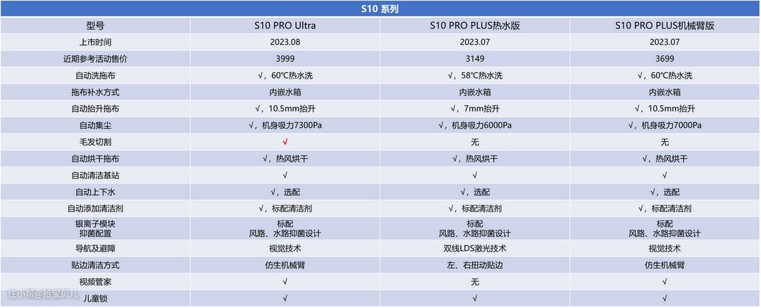 3、S10系列要毛发切割选ULTRA,要性价比选热水版,要综合最优选机械臂版