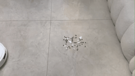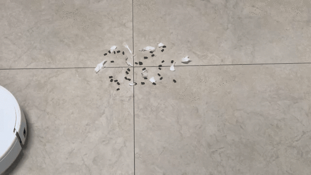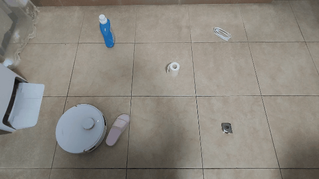 效果大家自己看,反正多路过几次,都是可以吸入的。现在扫地、吸入这一块,主流的机器人都没有什么大问题的。