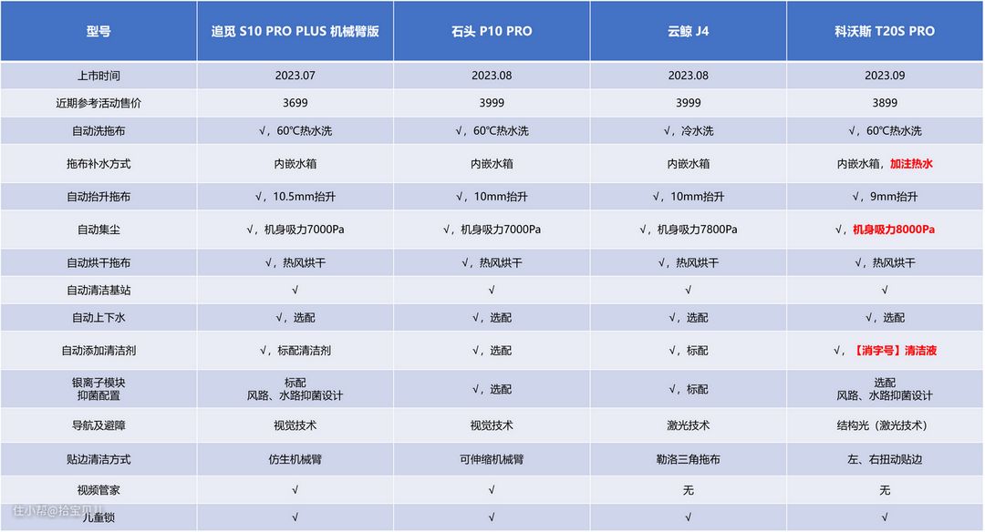 云鲸每年出一款,今年是J4,J4在同级别机器人中的水平,大家看表格,可谓一目了然。