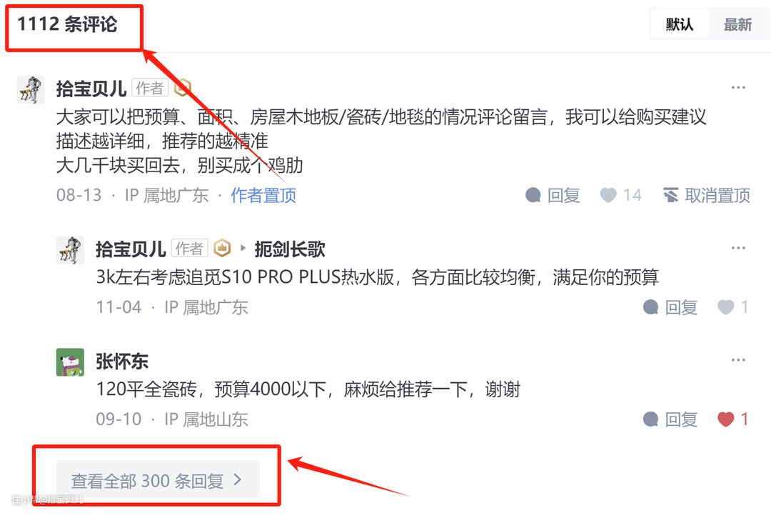 评论区累计有500多位读者留言咨询扫地机器人选购,我几乎都做到了每条必回,帮助这几百位朋友选到了合适的型号。