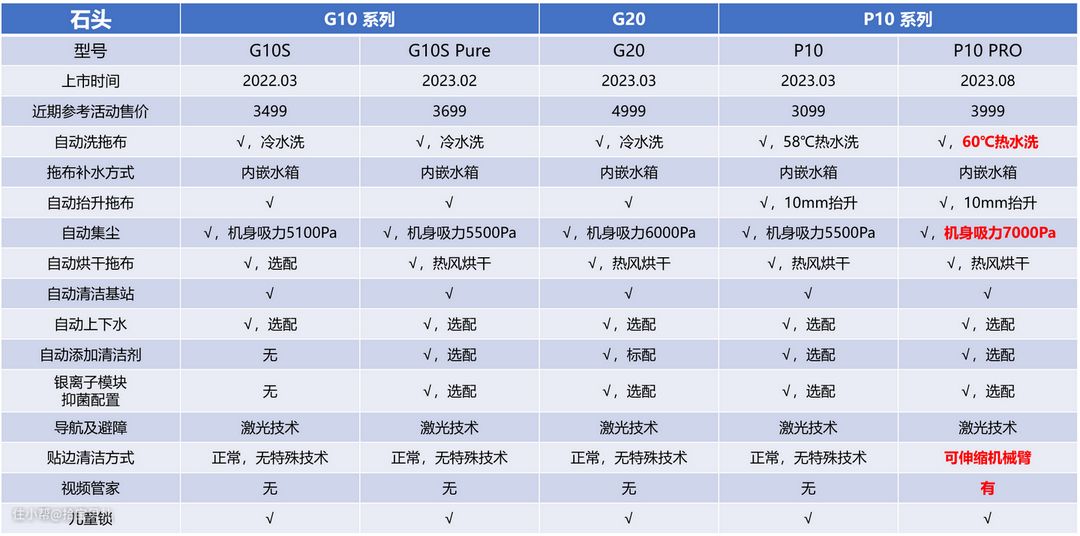 综合起来,石头现在值得考虑的就是P10 PRO,其他的型号都没有P10 PRO性价比高。