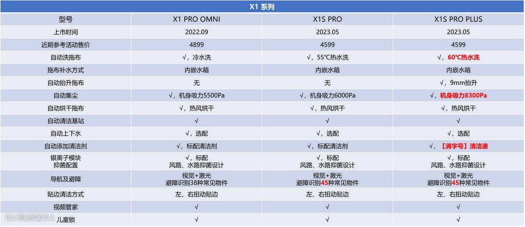大家对着表格看一下,就知道,为什么说只选X1S PRO PLUS。