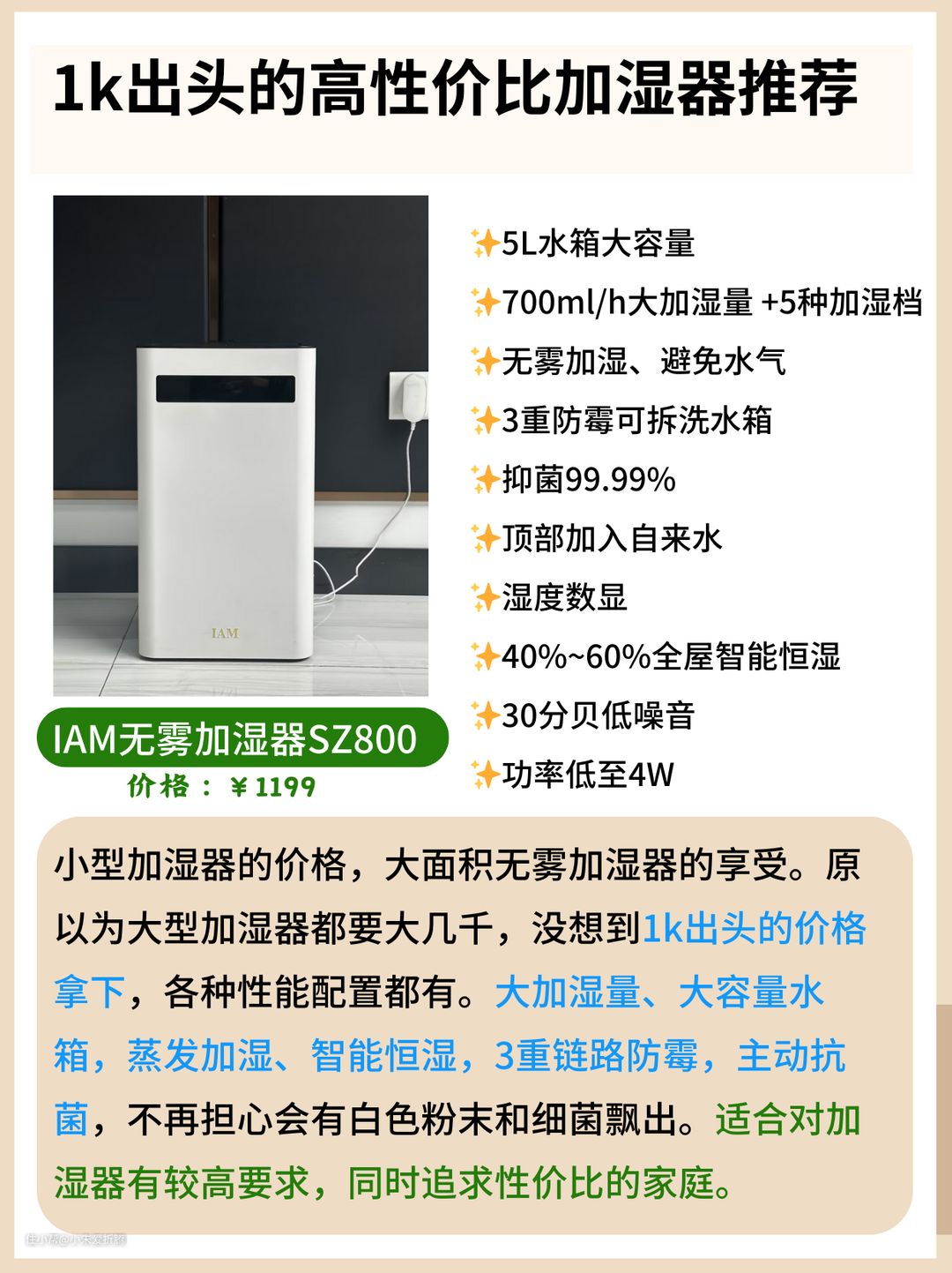 ✅适中的性价比,600-800ml/h加湿量,50平的客餐厅都能轻松应对