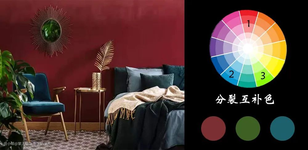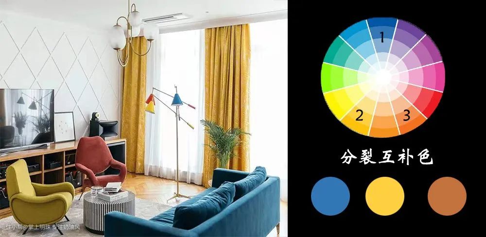 如果想强调空间色彩效果但不想只局限于两个颜色,又或者感觉直接对立互补色的碰撞过于直接、不够巧妙,分裂互补色就会是一个非常合适的选择。