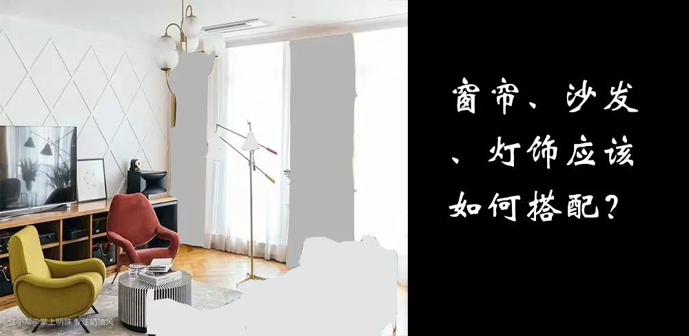 根据所占的面积,先来搭配窗帘。我们想要营造的风格的是温暖明亮轻松的,窗帘可以考虑黄色,同时要和椅子有一点层次,我们这里选用明度更高的黄色。