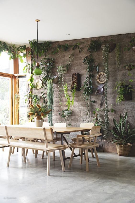 没有大量的室内植物波西米亚风格的餐厅是不完整的室内植物。绿色植物为空间增添了生机和新鲜感,营造出充满活力和诱人的氛围。将植物散布在房间各处,将它们放置在从地板到天花板的各个角落和表面。这会产生郁郁葱葱且层次分明的效果,为房间增添深度和质感。