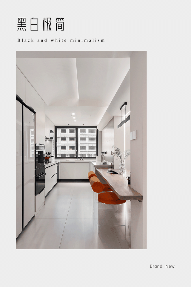 设计师从色彩和材质着手,将夫妻双方不同的审美喜好融合,以协调舒适的旋律在住宅的每一寸空间肌理和设计质料中演奏。简单黑白色恰好抹去了生活负载的浮躁,把纯粹放松全部还给“家”。克制又新鲜的、冲突又安逸的,在这个黑白极简空间里,相融又绽放~