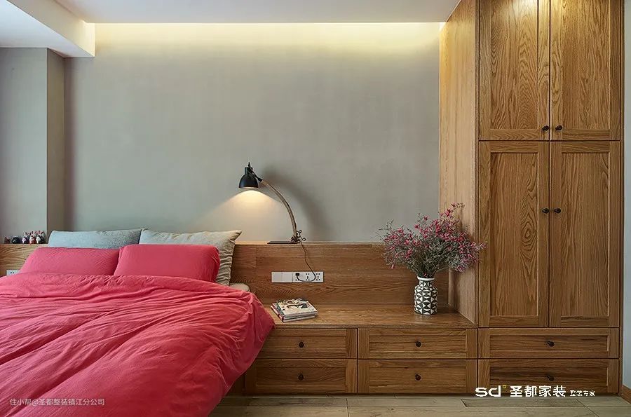 木饰面自带亲和感,更易打造宜居的睡眠空间,让人一下子就放松下来。