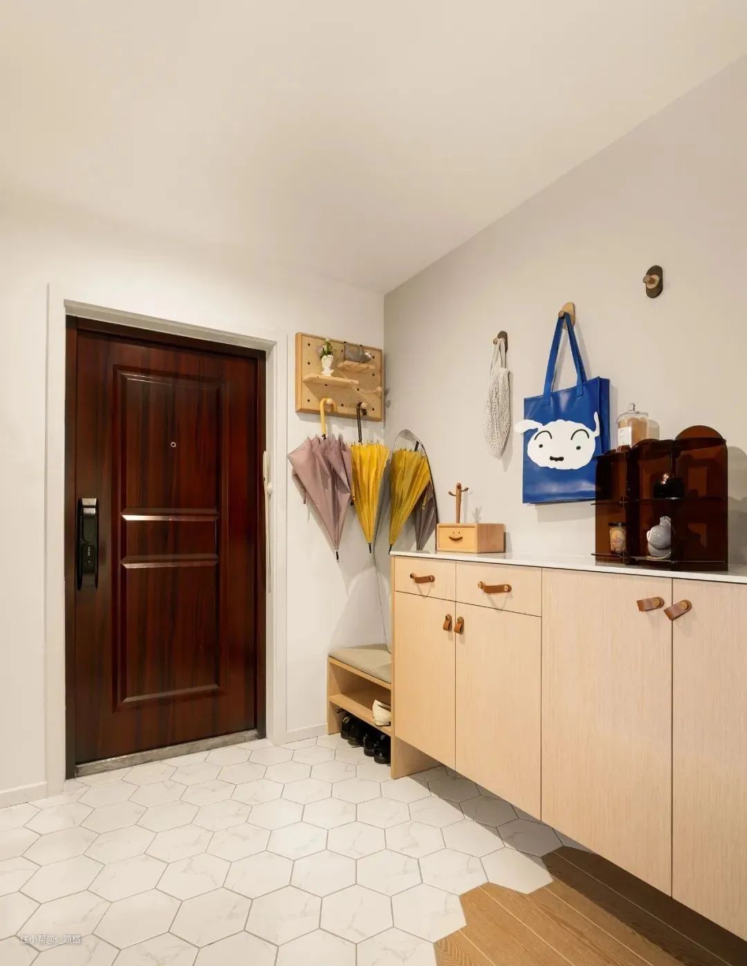 所以,干脆就不用门槛石了。直接选择地砖或地板通铺,简单而大气。