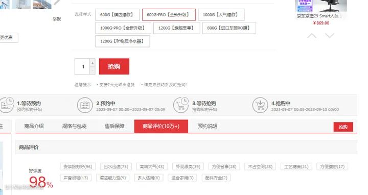 或许大家看到这里能明白我说的我为什么一提起高性价比净水器就说京造,对我来说,净水器行业的品牌实力他有了,我要的是性价比的话,不会过分追求外在的形象,只要净水能力不缩水就ok,还要便宜,这些需求来看,真挑不出什么毛病,人家一个2022年才开始布局净水器业务的品牌,已经是爆卖20W+了,而且京东好评率也达到了98%: