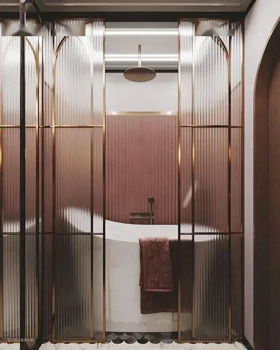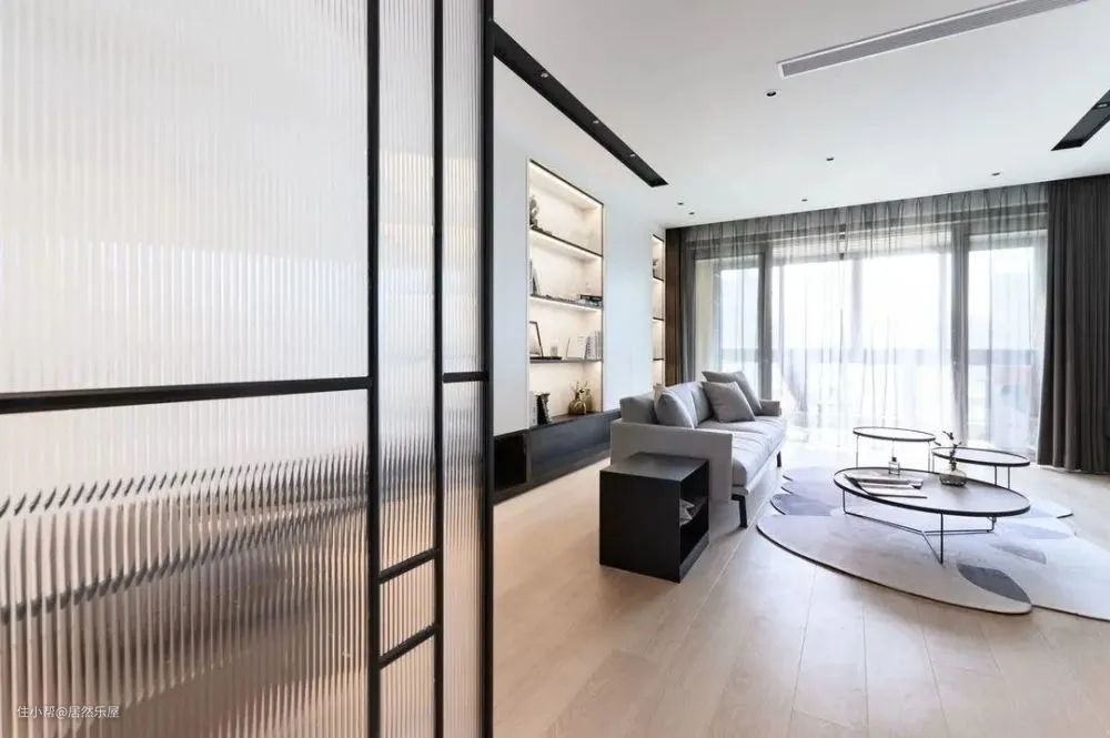 长虹玻璃的特殊质感也使它成为妆点空间的小能手,这种透光不透视的朦胧感刚好作为隔断来划分空间,既不会挡住光线,还能增加美感。
