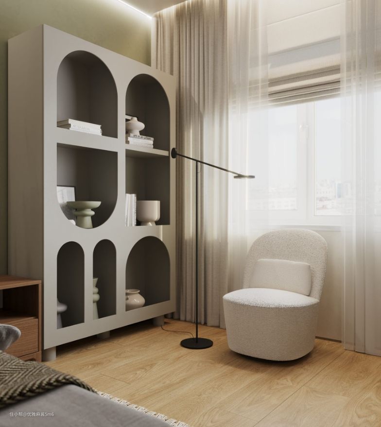 脏绿色+原木,打造卧室的清新复古感