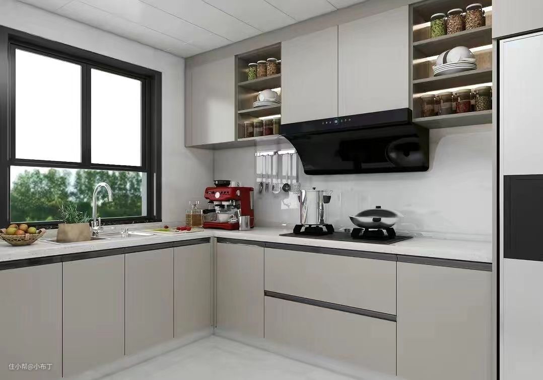 L型烟机的机构厚度只有35cm,装修过的朋友都知道,这个厚度和厨房吊柜的常规厚度刚好相同。简而言之,L型烟机和吊柜刚好在一个平面上,不仅厨房装修效果好,而且也不会出现碰头的问题。