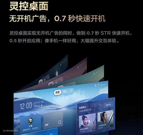 并且开机可以直达用户界面,很方便的是,我们可以根据角色进行系统分身,比如探索,观影,长辈以及少儿,不同的分身具有不同的侧重点,不管老人小孩儿都可以轻松操作,找到适合自己的内容,并且展示UI界面可以根据自己的喜好模块化的设置,非常的人性化