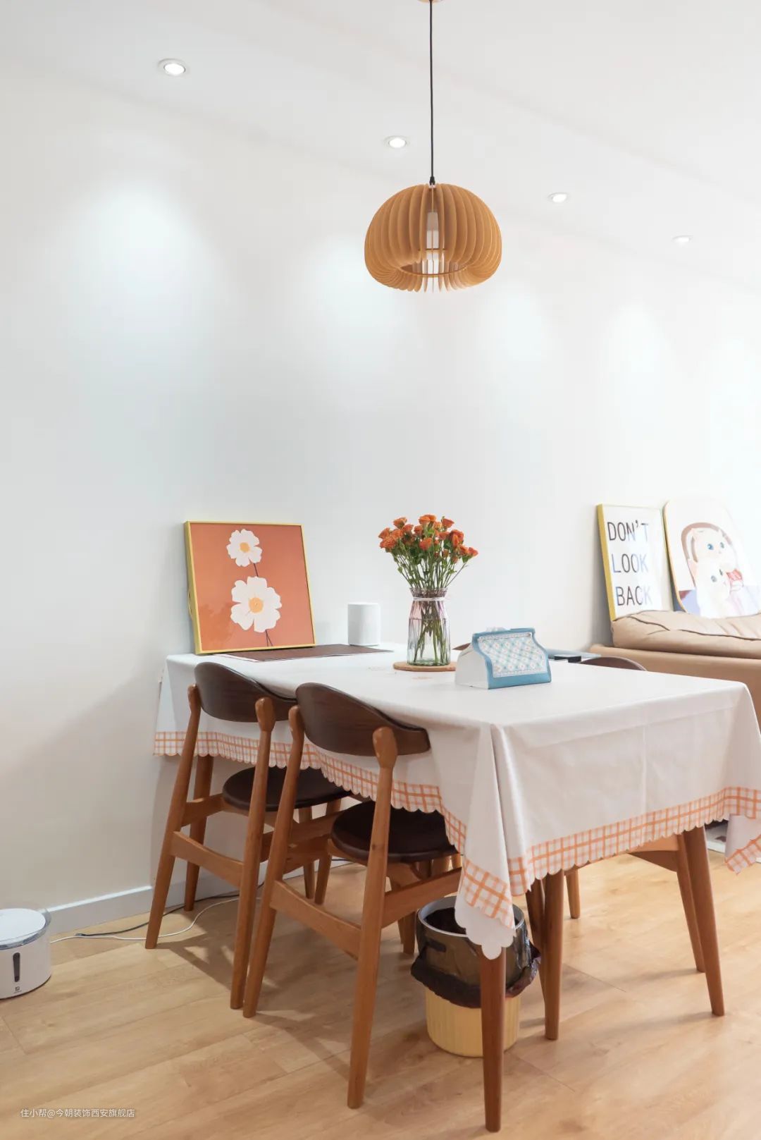 一些小的装饰物可以给家增添一份温暖和个性,可以选择一些温馨的挂画,有生机的绿植或鲜花,彰显活力,增加房间的生命力。