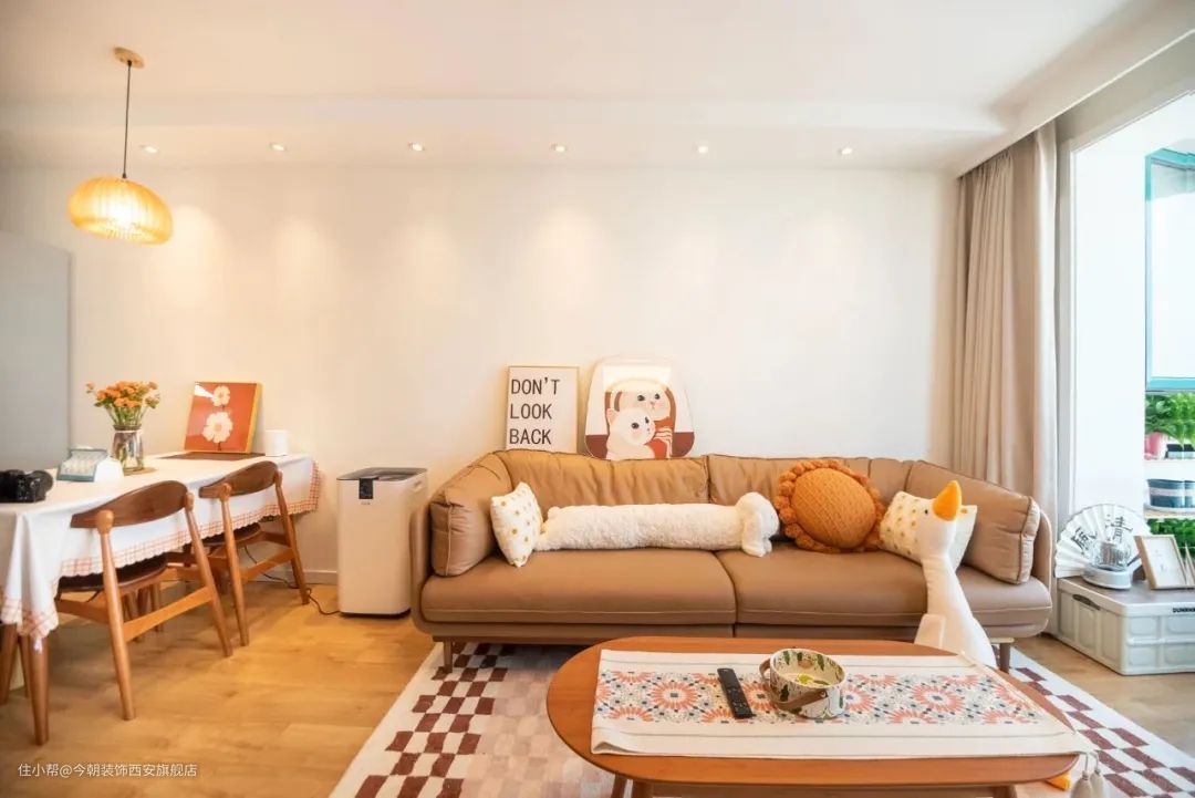 自带温柔感的奶油色、温馨的棕色、淡雅的卡其色等等都是很好的选择,这些暖色调在视觉上具有扩张感,可以使空间显得更加温馨。